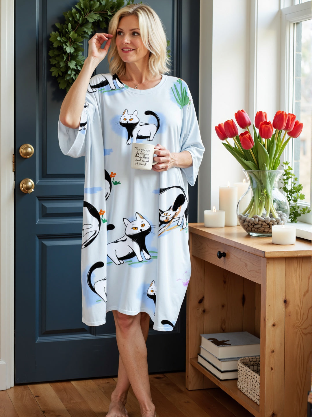 "I’m a size 3XL and it still drapes beautifully. So flattering and comfy!"