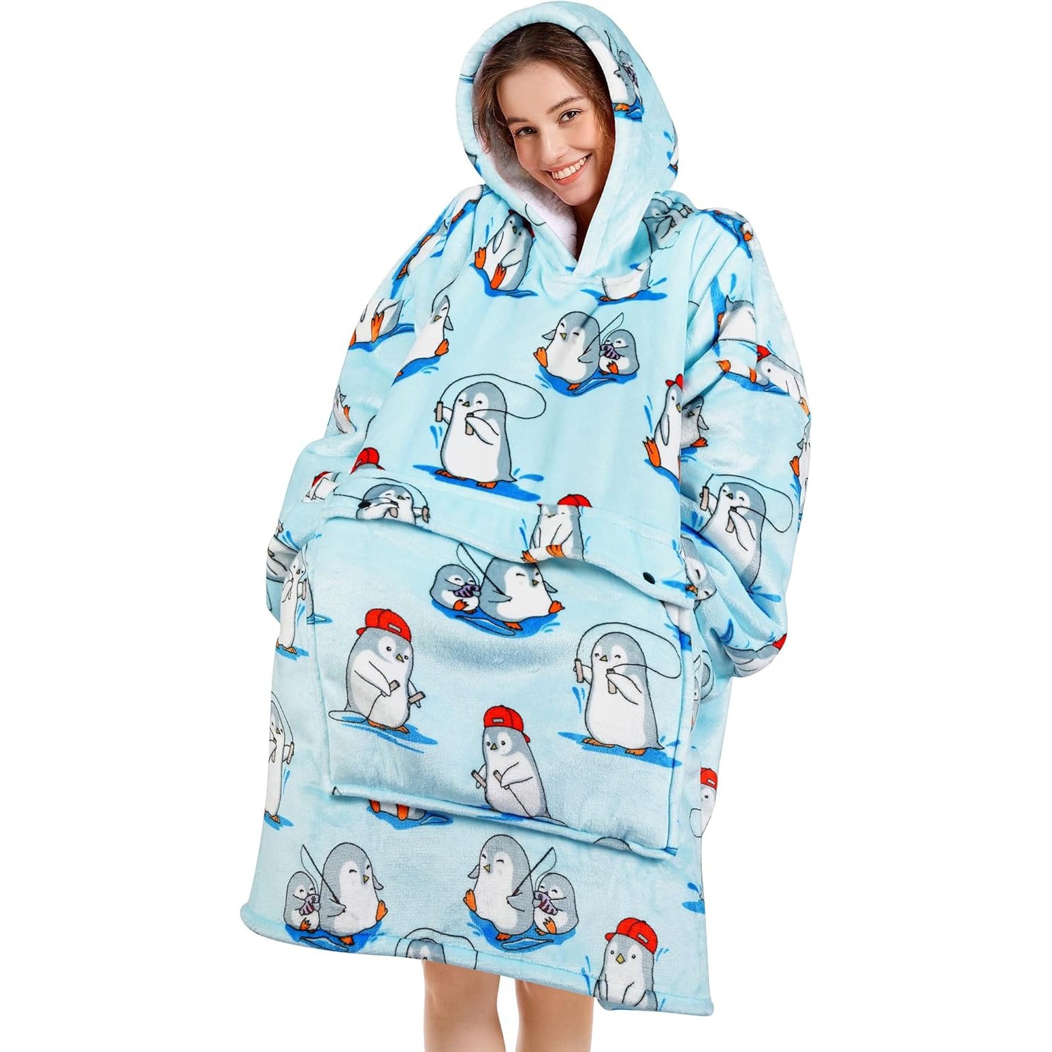 Blue Penguin Blanket Hoodie