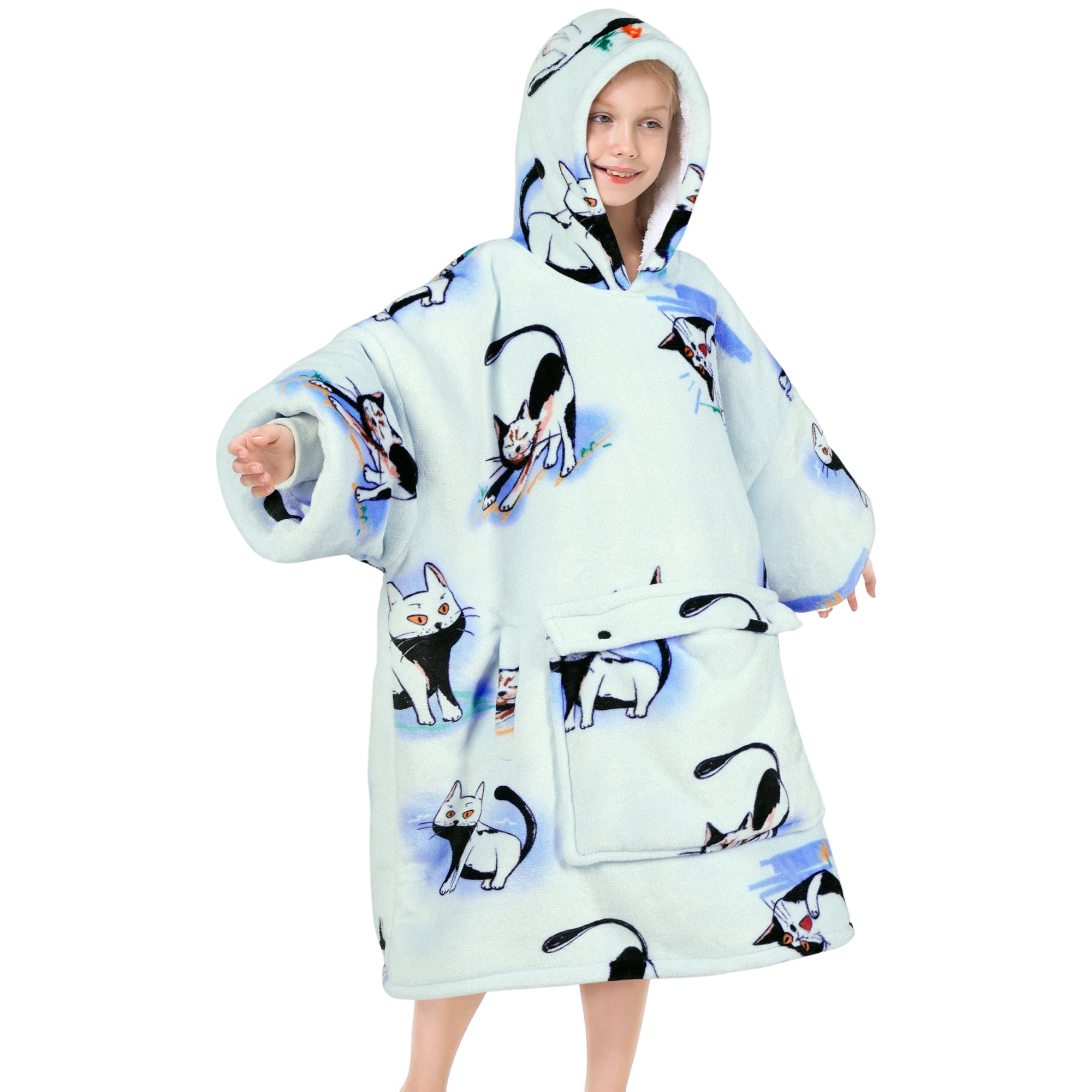 Blue Cat Blanket Hoodie Kids